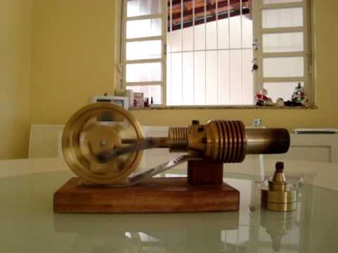 Motor stirling - Inventado em 1816, por Robert Stirling, funciona através do deslocamento de ar quente dentro dos cilindros, com 600 rpm.